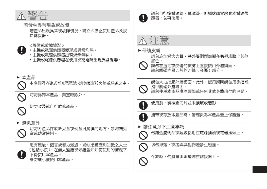 若產品出現異常或故障情況,請立即停止使用產品及拔