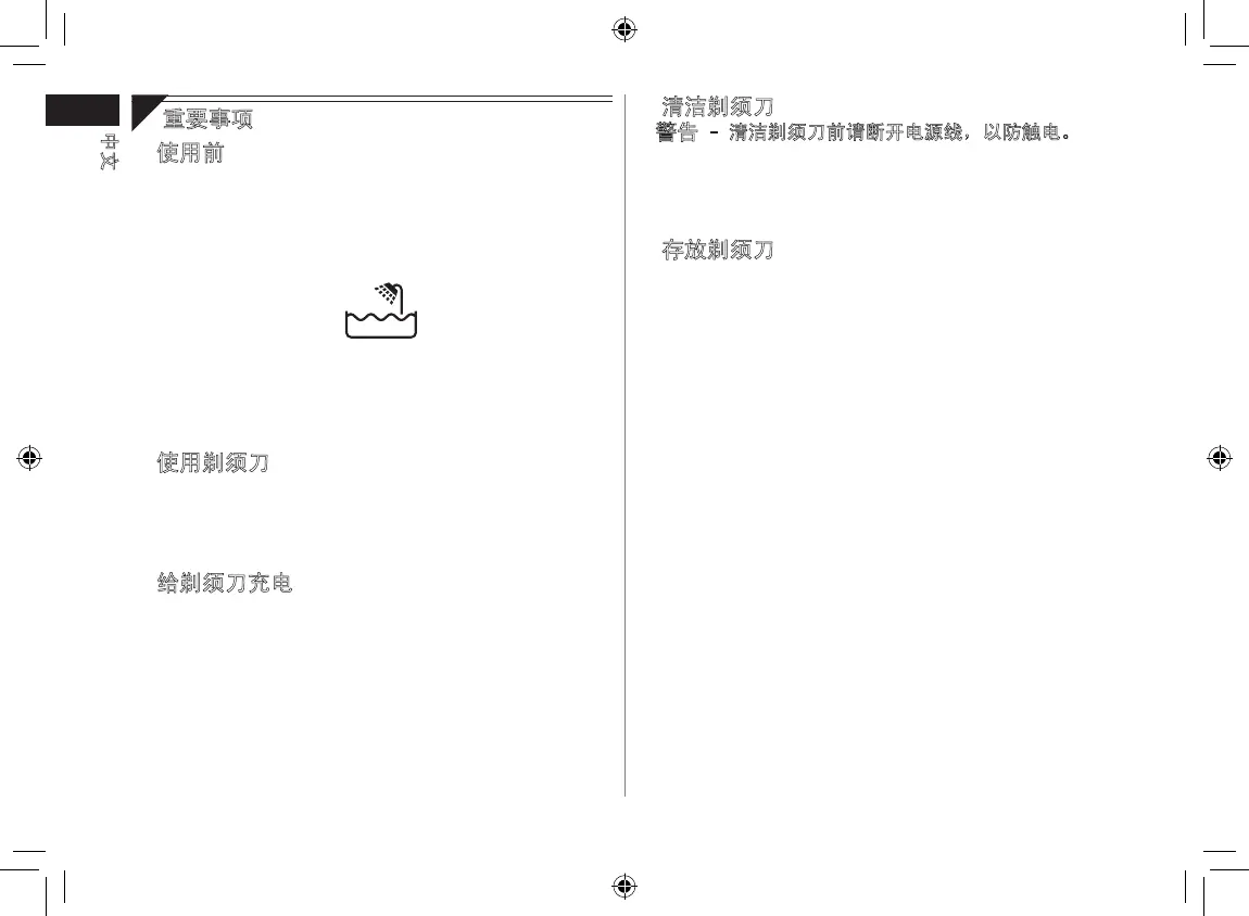 手要保持干燥。剃须刀在使用和充电过程中可能会变