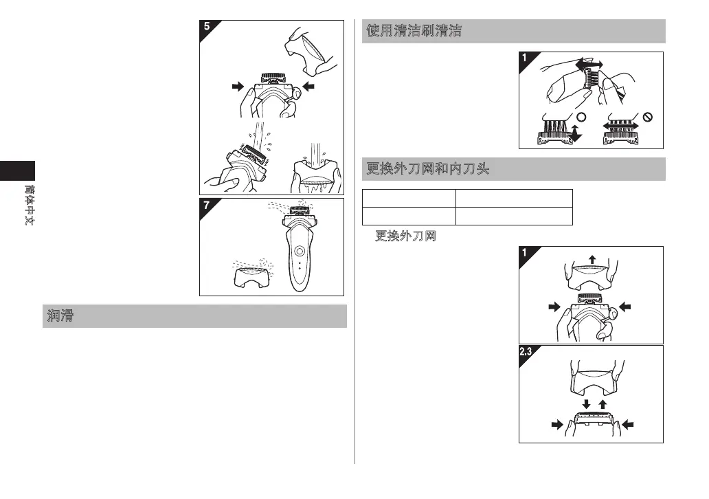 Panasonic ES-ST21 - 润滑; 使用清洁刷清洁; 更换外刀网和内刀头