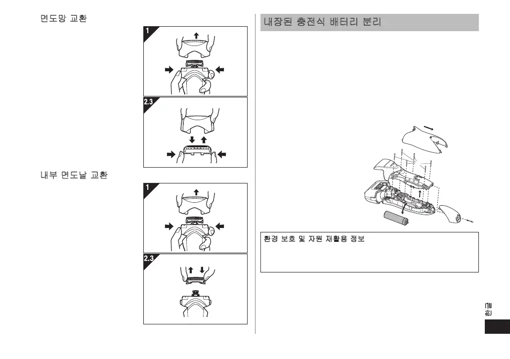 면도기를 폐기하기 전에 내장된 충전식 배터리를 분리합니다 .