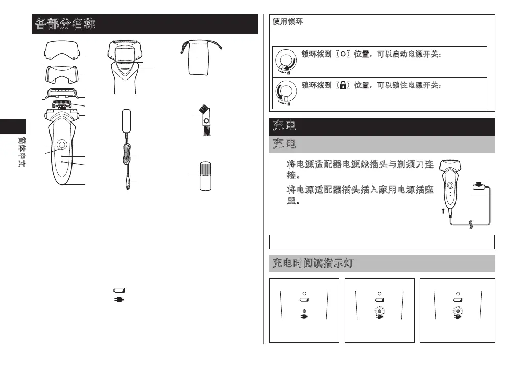 Panasonic ES-ST21 - 各部分名称; 充电; 充电时阅读指示灯