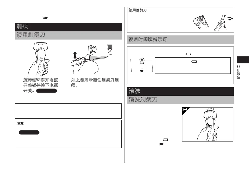 使用剃须刀时不要将手指放在电源开关上。这样会导致剃须刀关