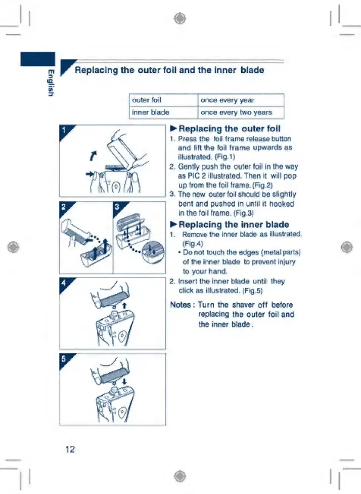 Panasonic ES3832 - Replacing the Outer Foil and Inner Blade; Replacing the Outer Foil; Replacing the Inner Blade