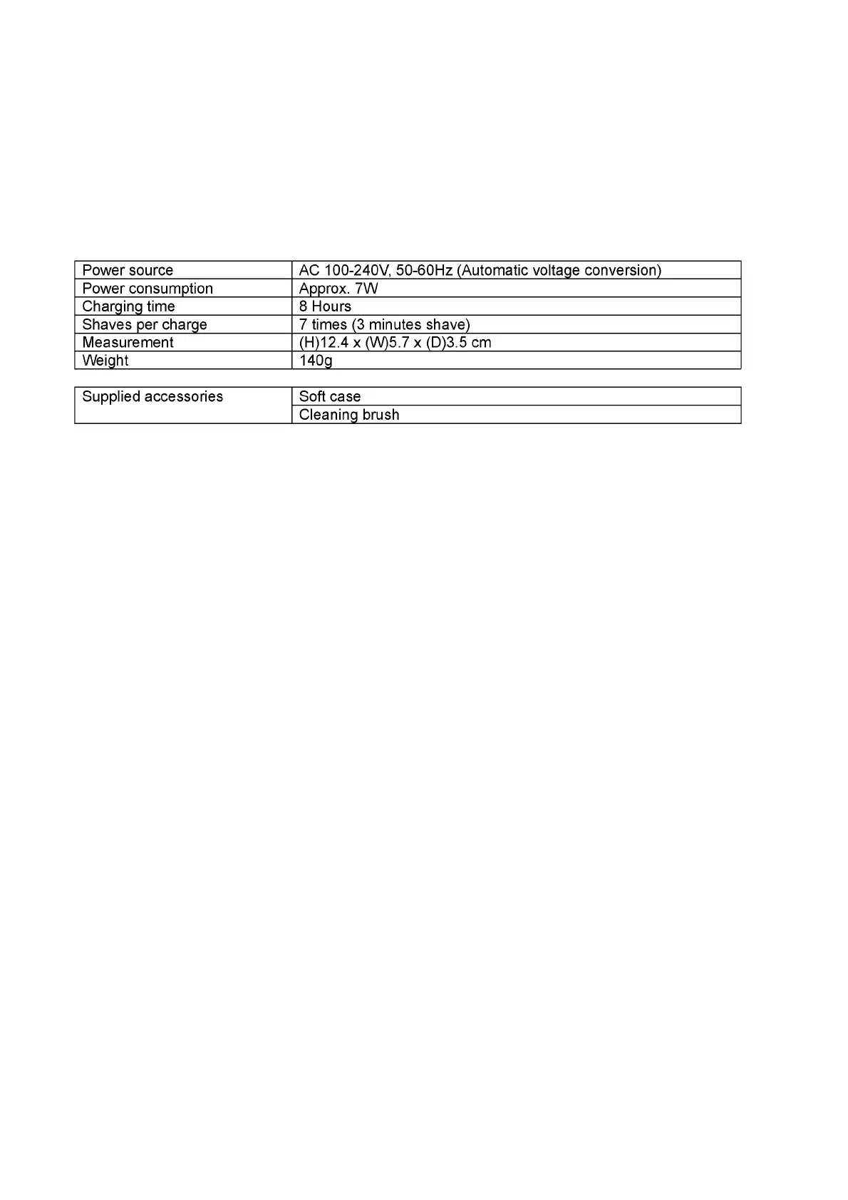 Panasonic ES4853 - Warning; Specifications