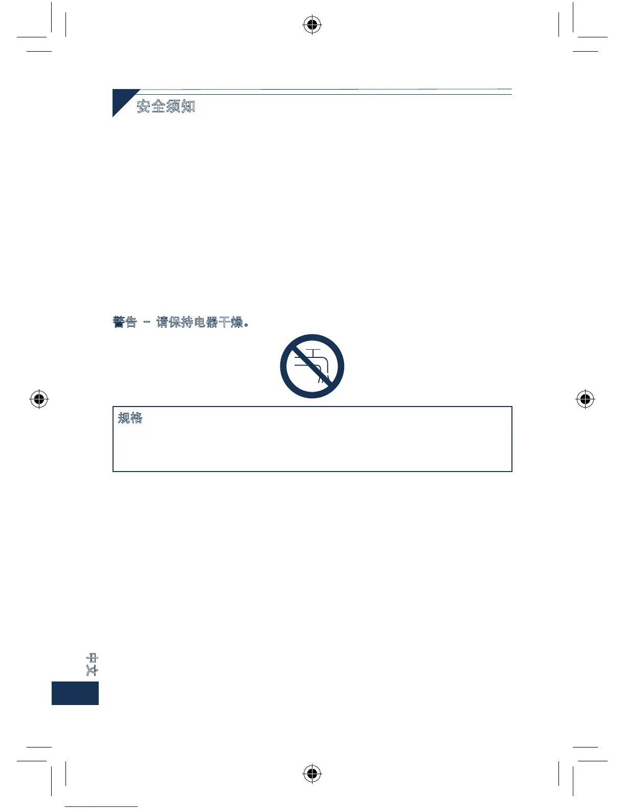 警告 - 请保持电器干燥。