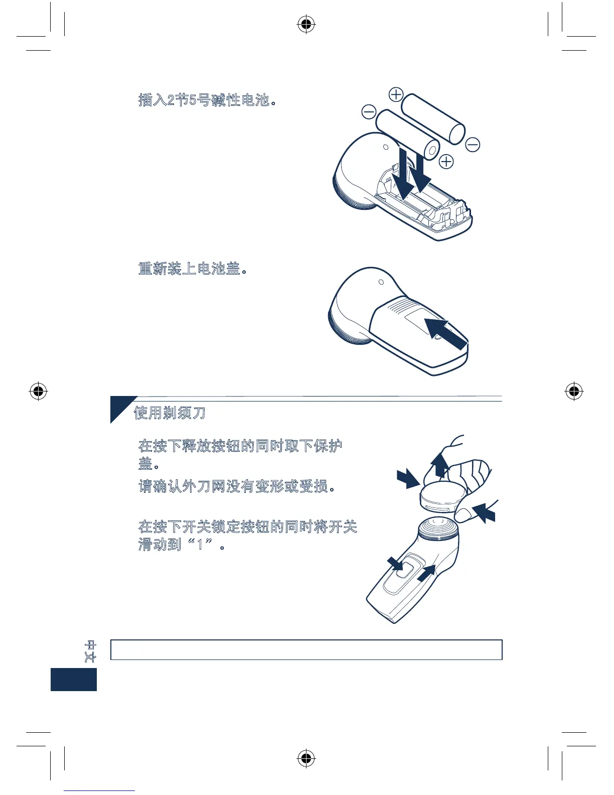 插入2节5号碱性电池。