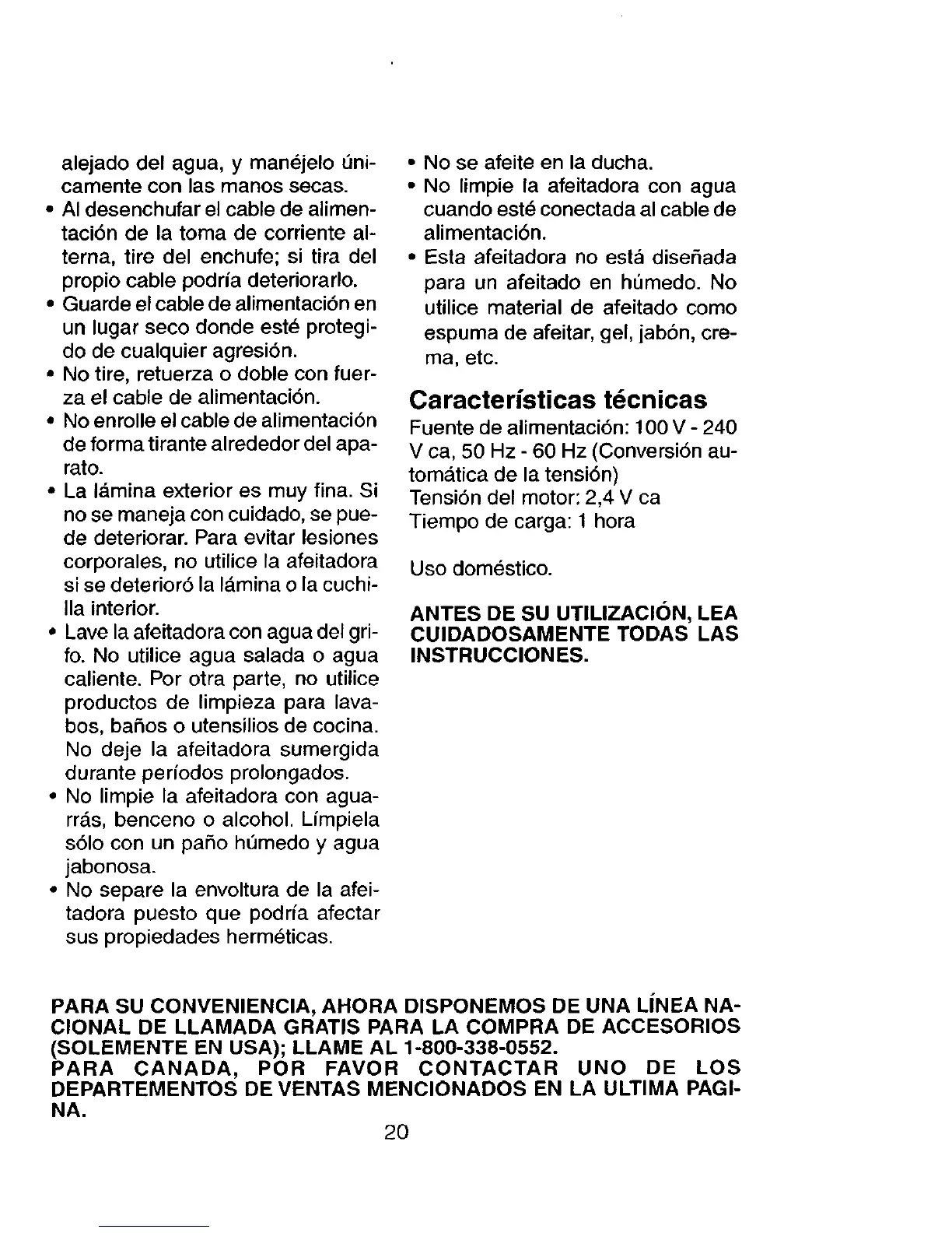 PARA CANADA, POR FAVOR CONTACTAR UNO DE LOS