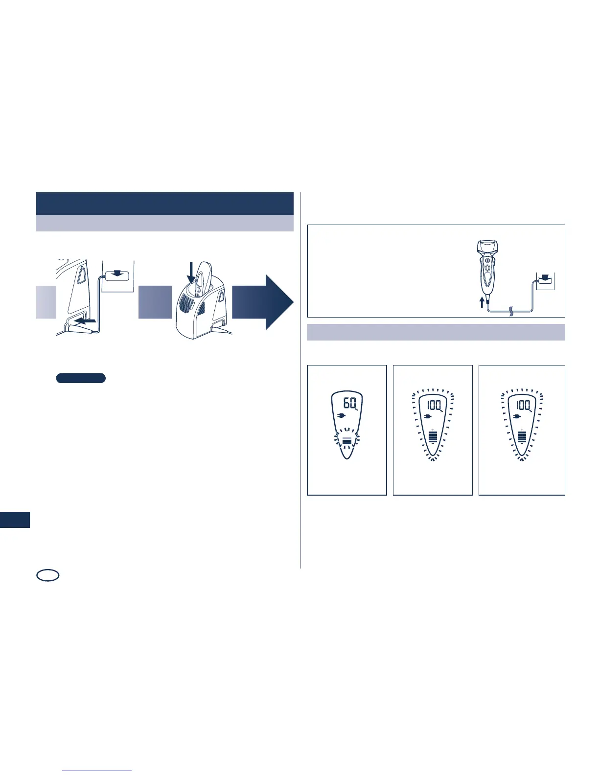 Slå barbermaskinen av før tilkopling.
