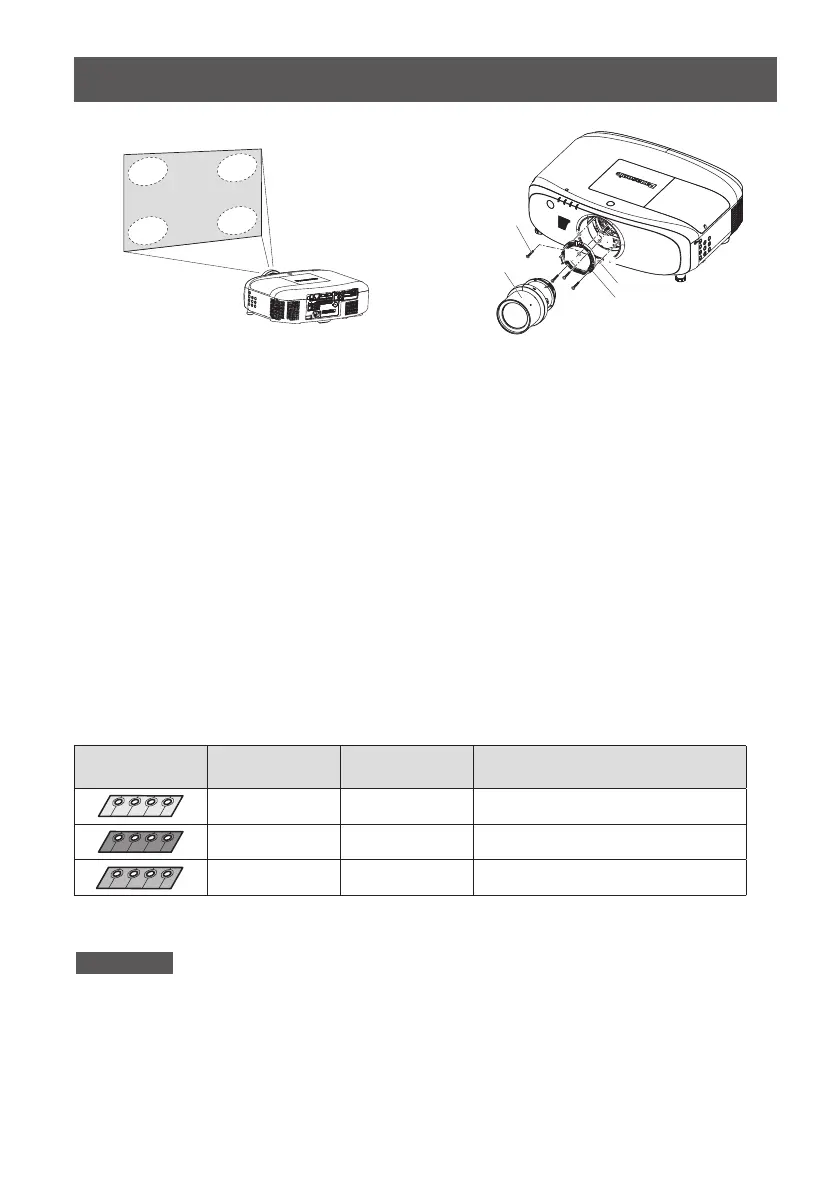 Remove the lens mounter from the projector, and insert the spacers in the positions