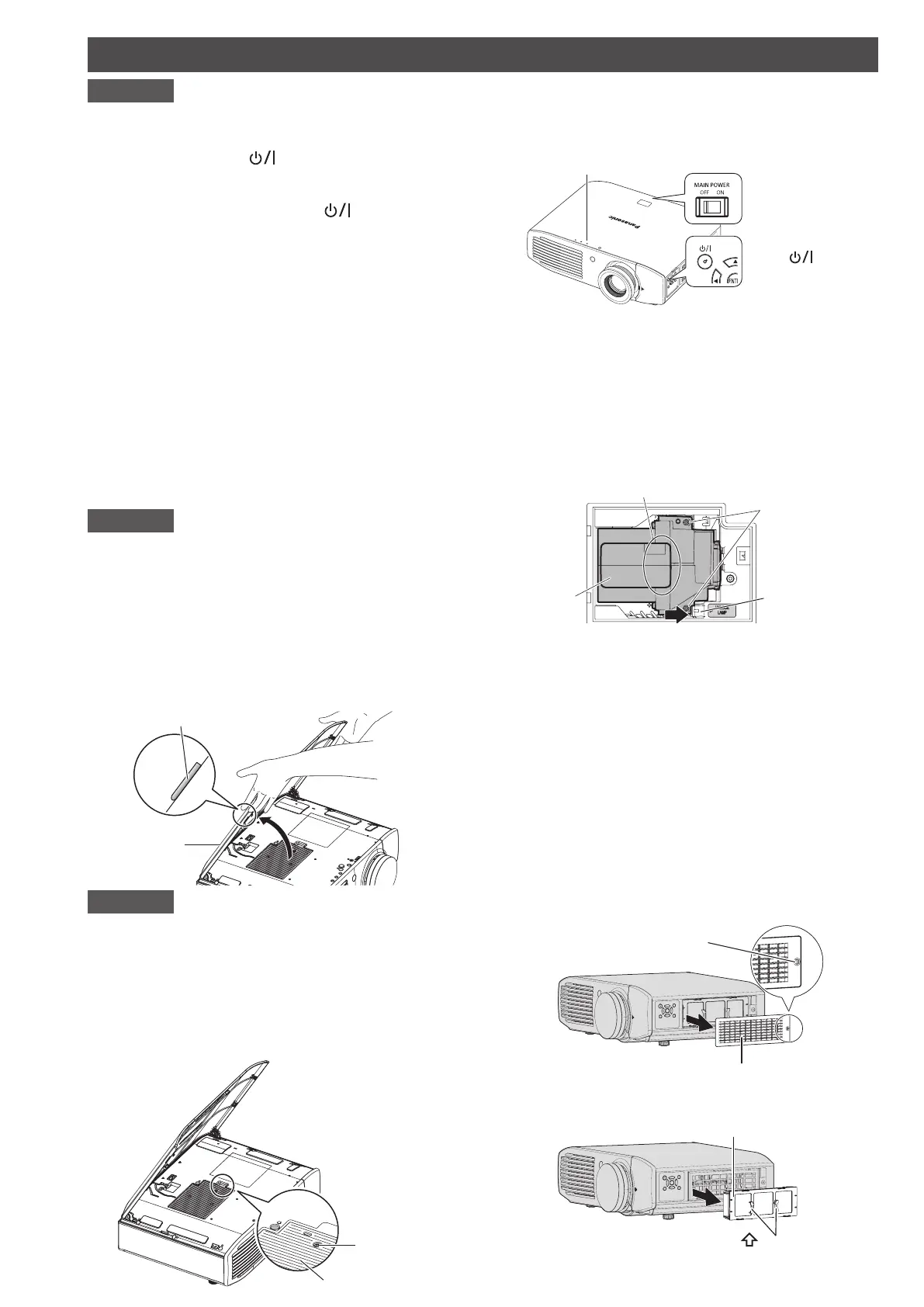 Do not remove any screws other than those indicated when replacing the lamp ■