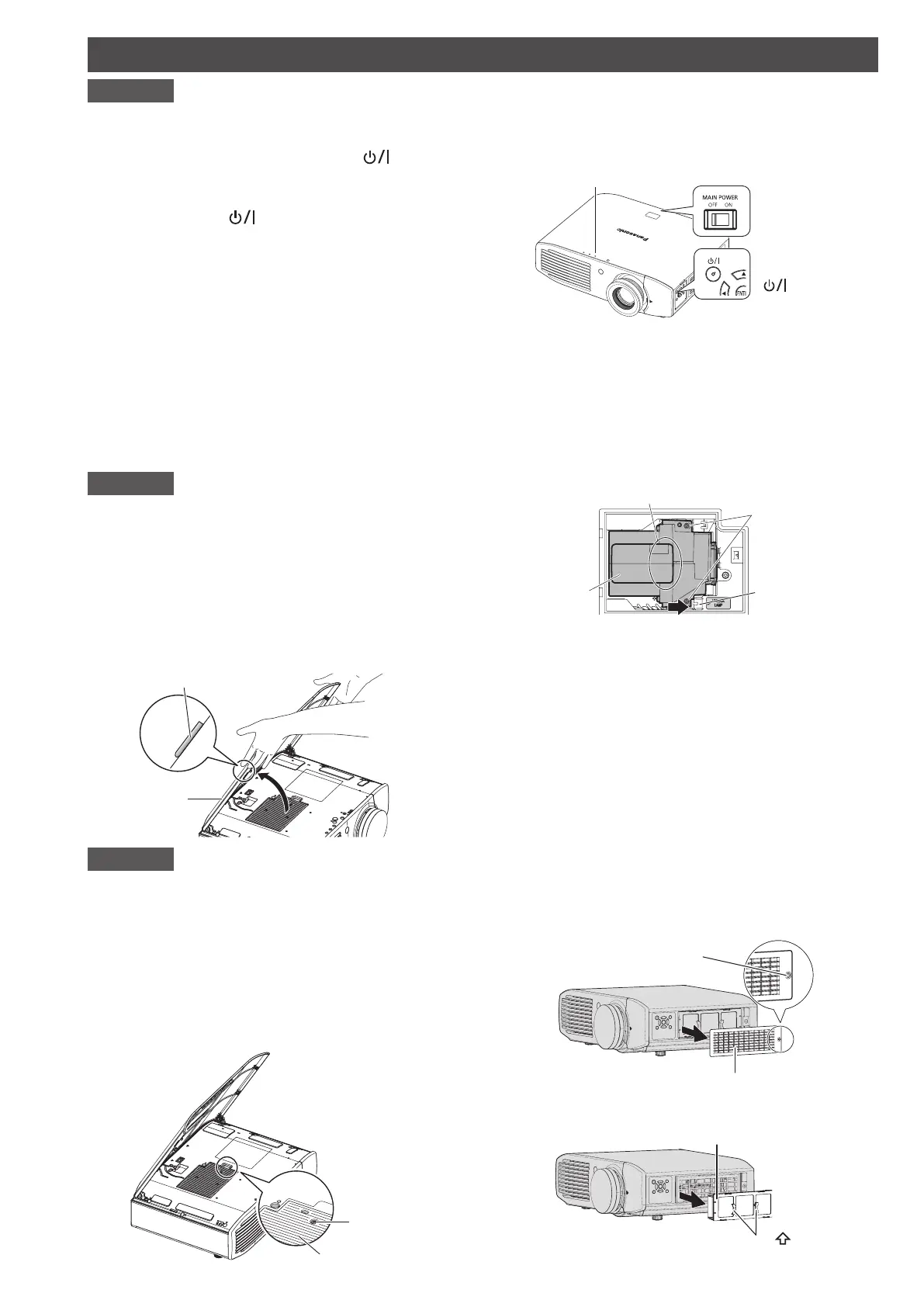 Tenir la poignée lorsque vous enlevez la lampe. La lampe comporte des parties coupantes susceptibles d'occasionner des