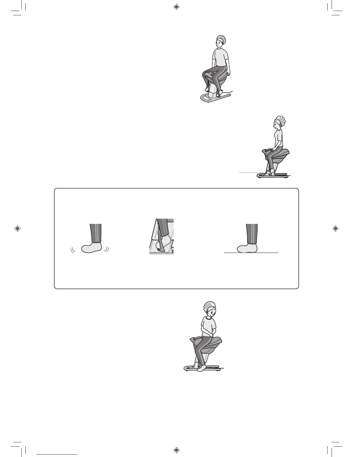 No stirrup, foot suspended• Foot placed on stirrup• No stirrup, foot on floor•