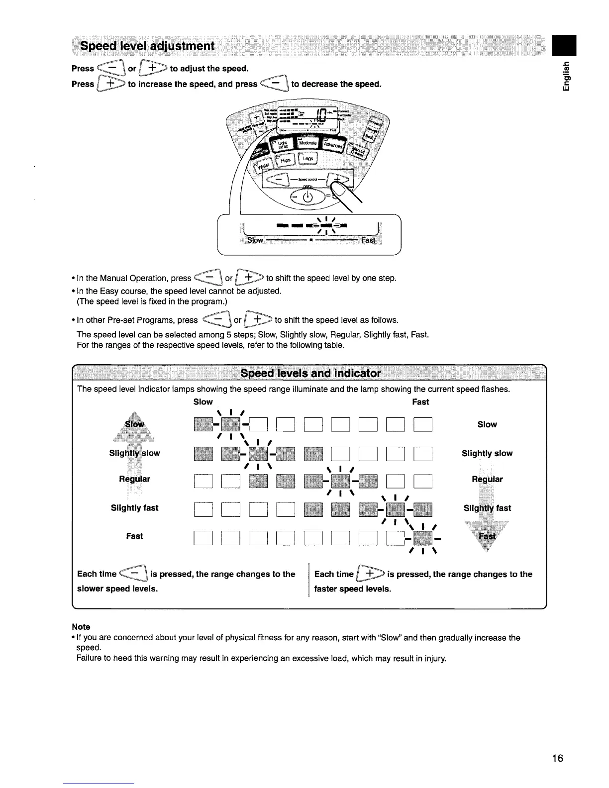 Panasonic EU7805K - Speed Level Adjustment; Speed Levels and Indication
