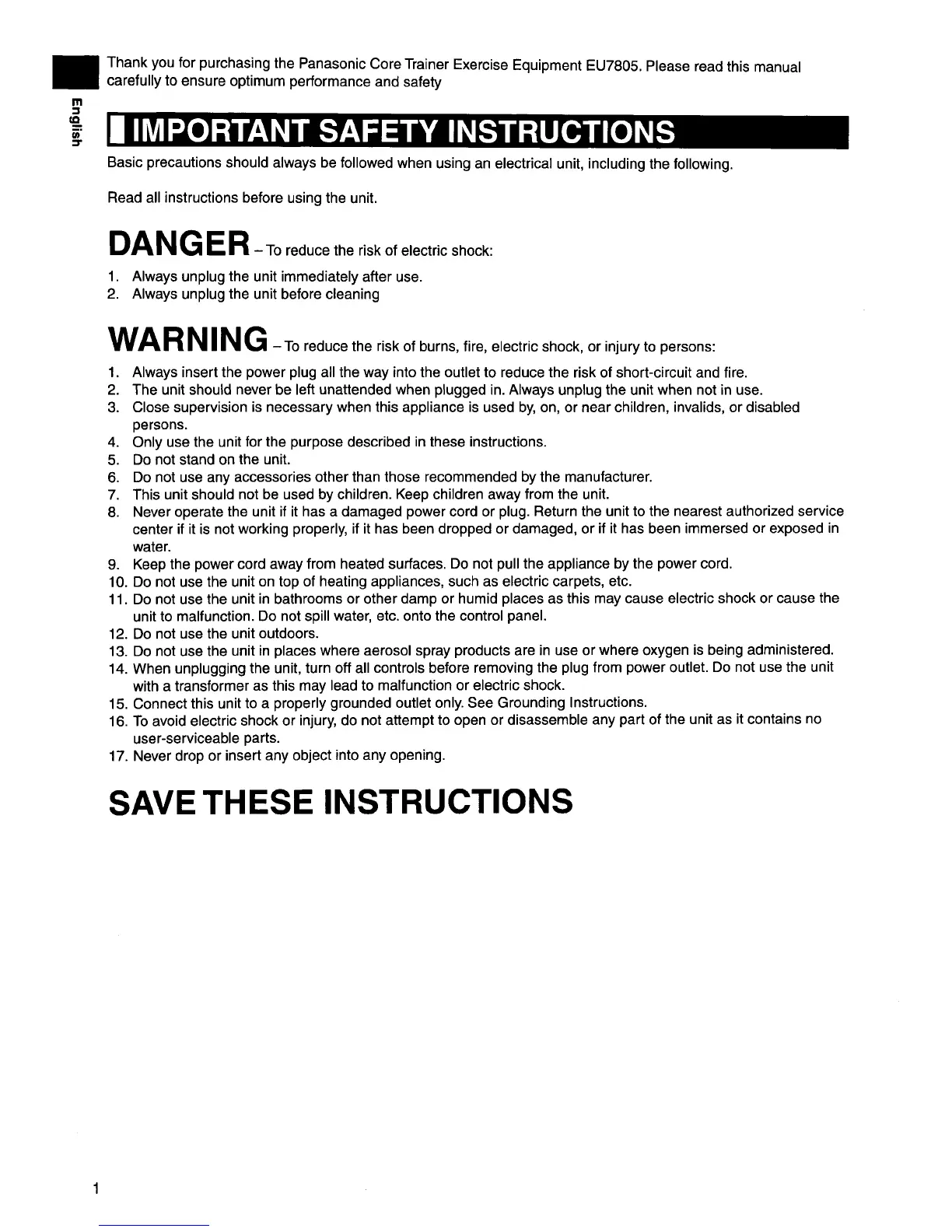 Panasonic EU7805K - Important Safety Instructions
