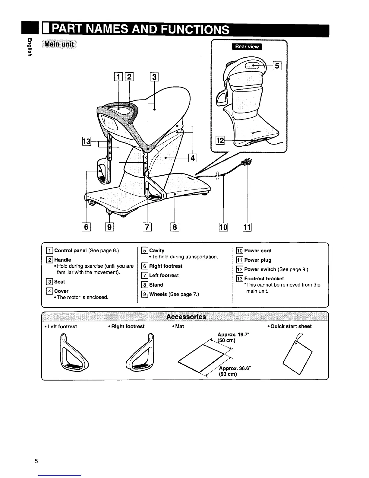 Panasonic EU7805K - Part Names and Functions; Main Unit; Accessories