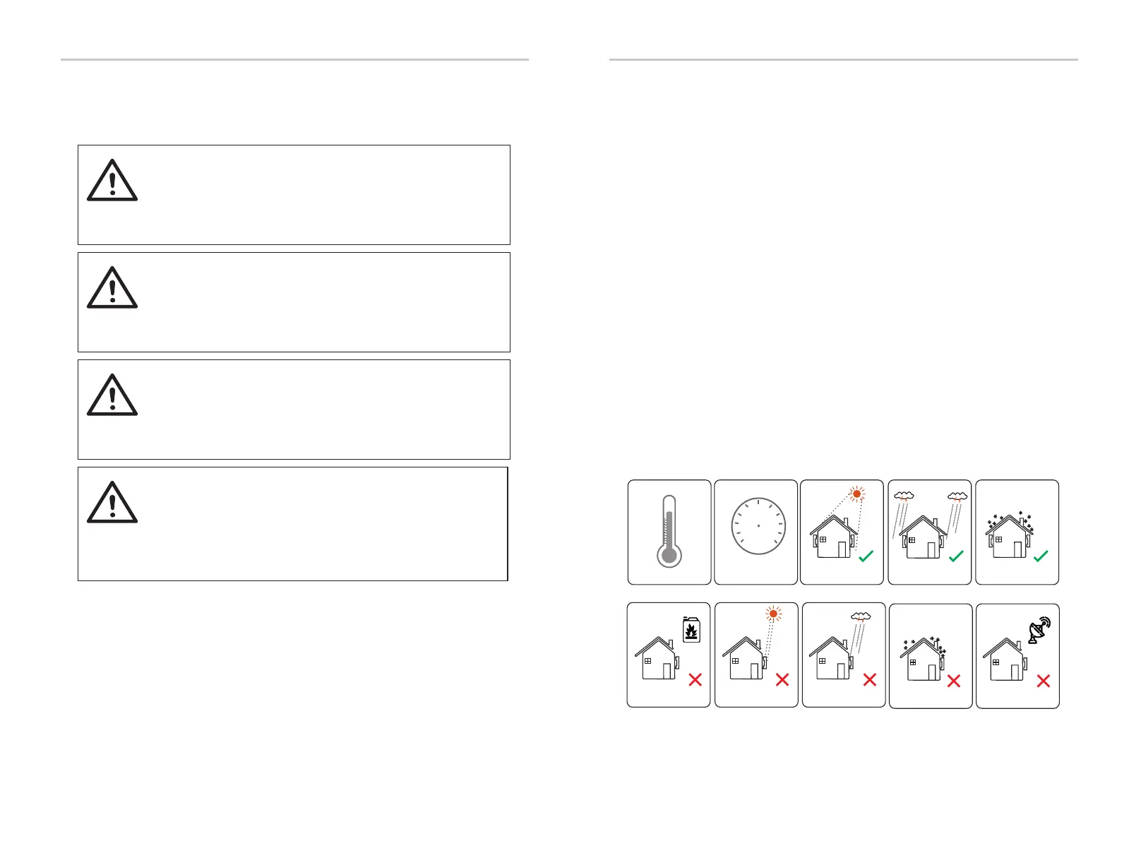 Ÿ Avoid direct sunlight, rain exposure, snow laying up during installing and