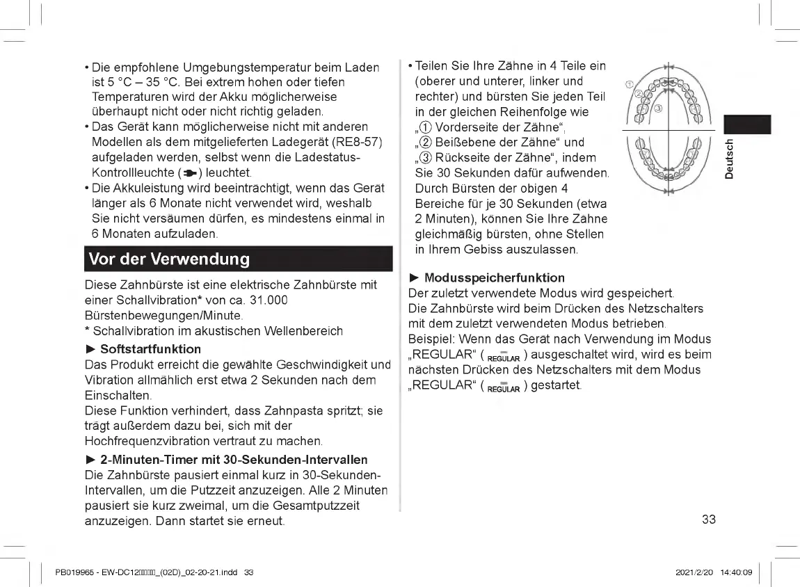 pausiert sie kurz zweimal, um die Gesamtputzzeit