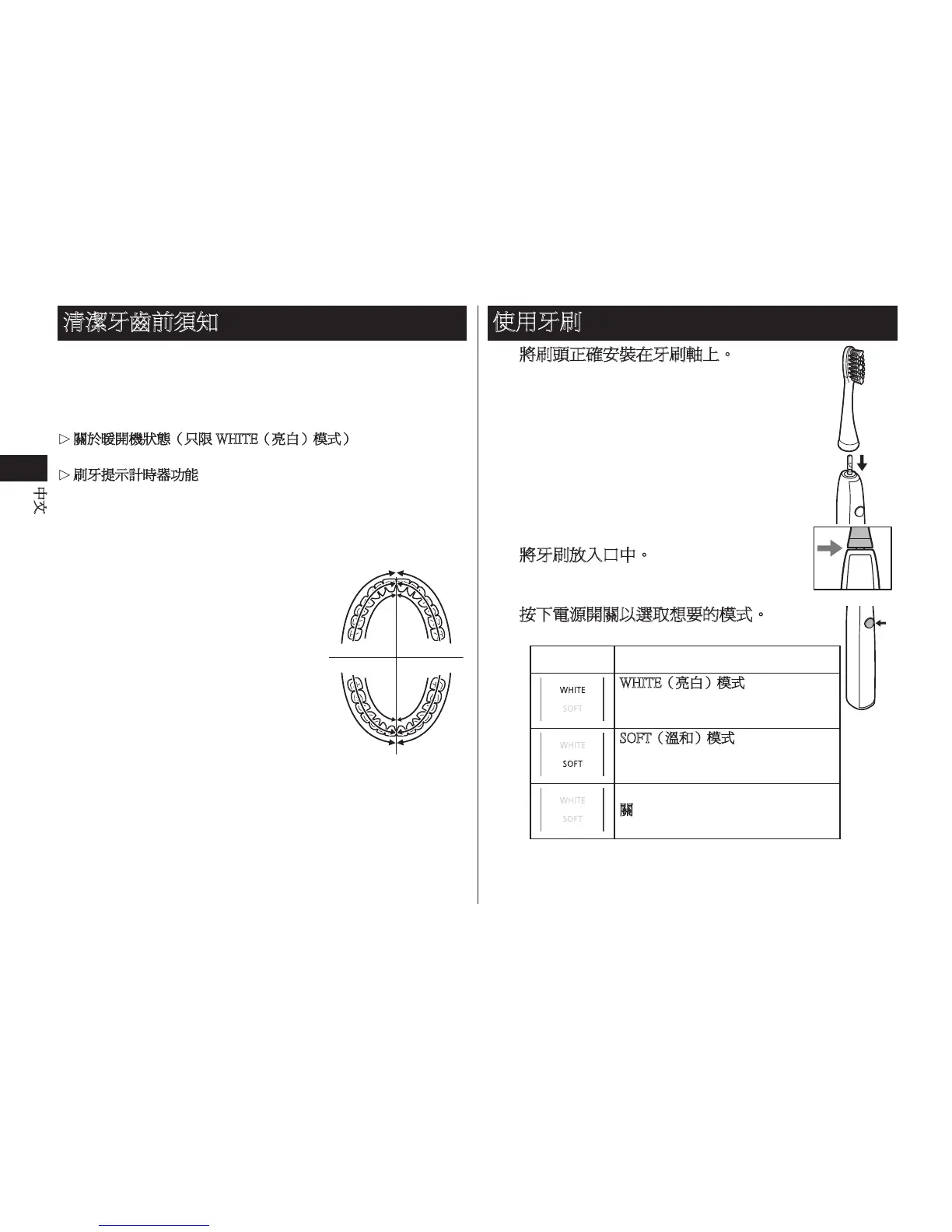 請充分應用刷牙提示計時器,以確保口腔內每個部位都清潔乾淨。