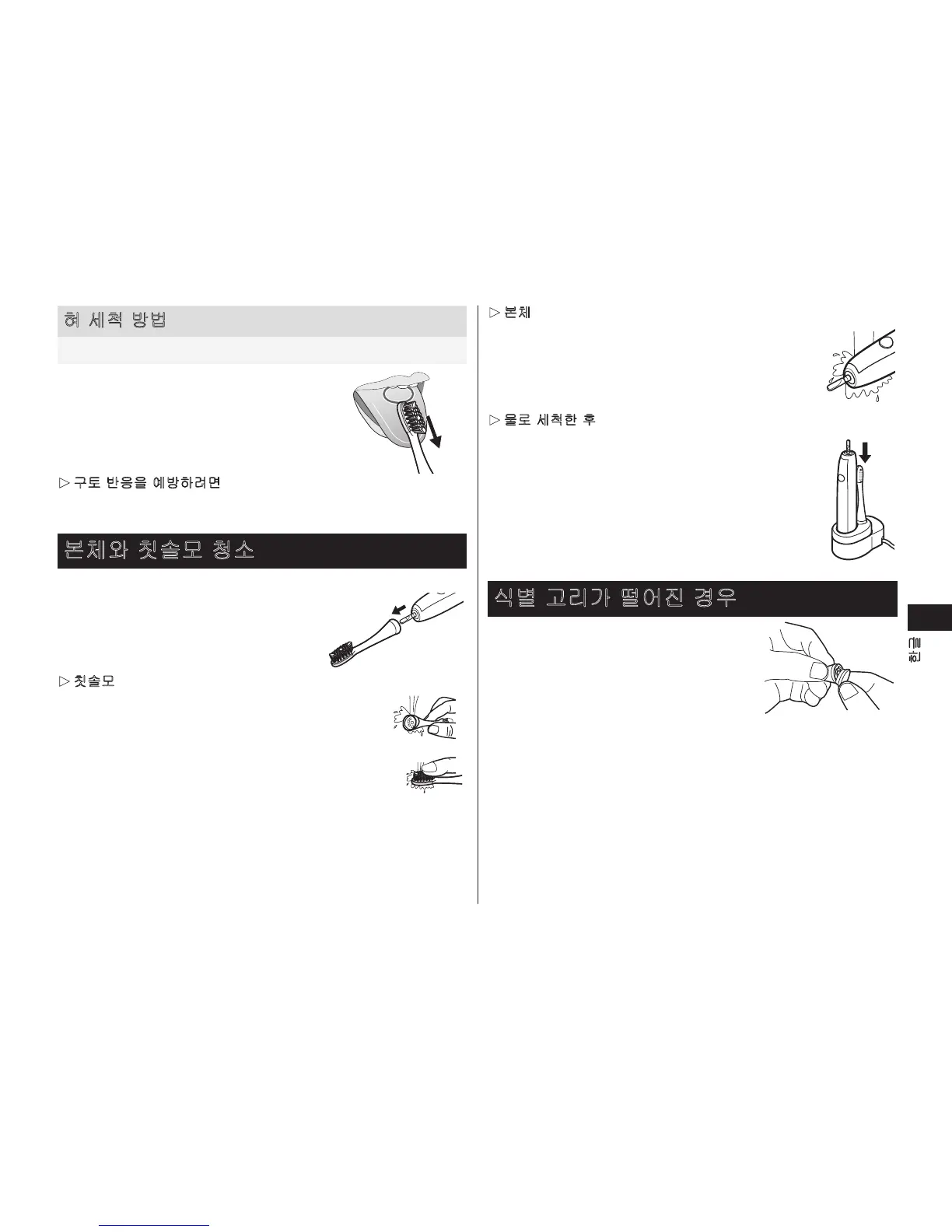 •본체를끄고칫솔모를제거한후물로