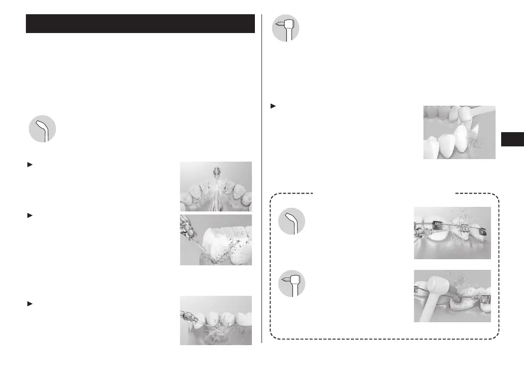 Miřte na přední a zadní stranu zubů.