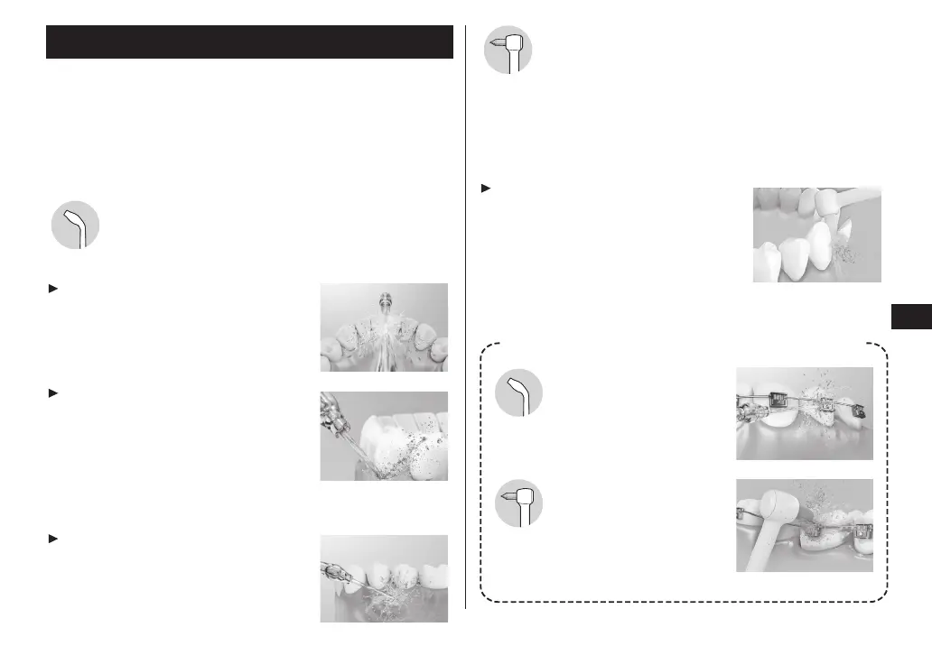 Con el chorro de agua y la boquilla de ortodoncia, limpie