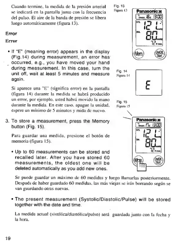 Panasonic EW284 - Measurement Storage and Errors; Error Handling