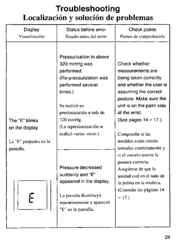 Panasonic EW284 - Troubleshooting; Error E - Pressurization Issues
