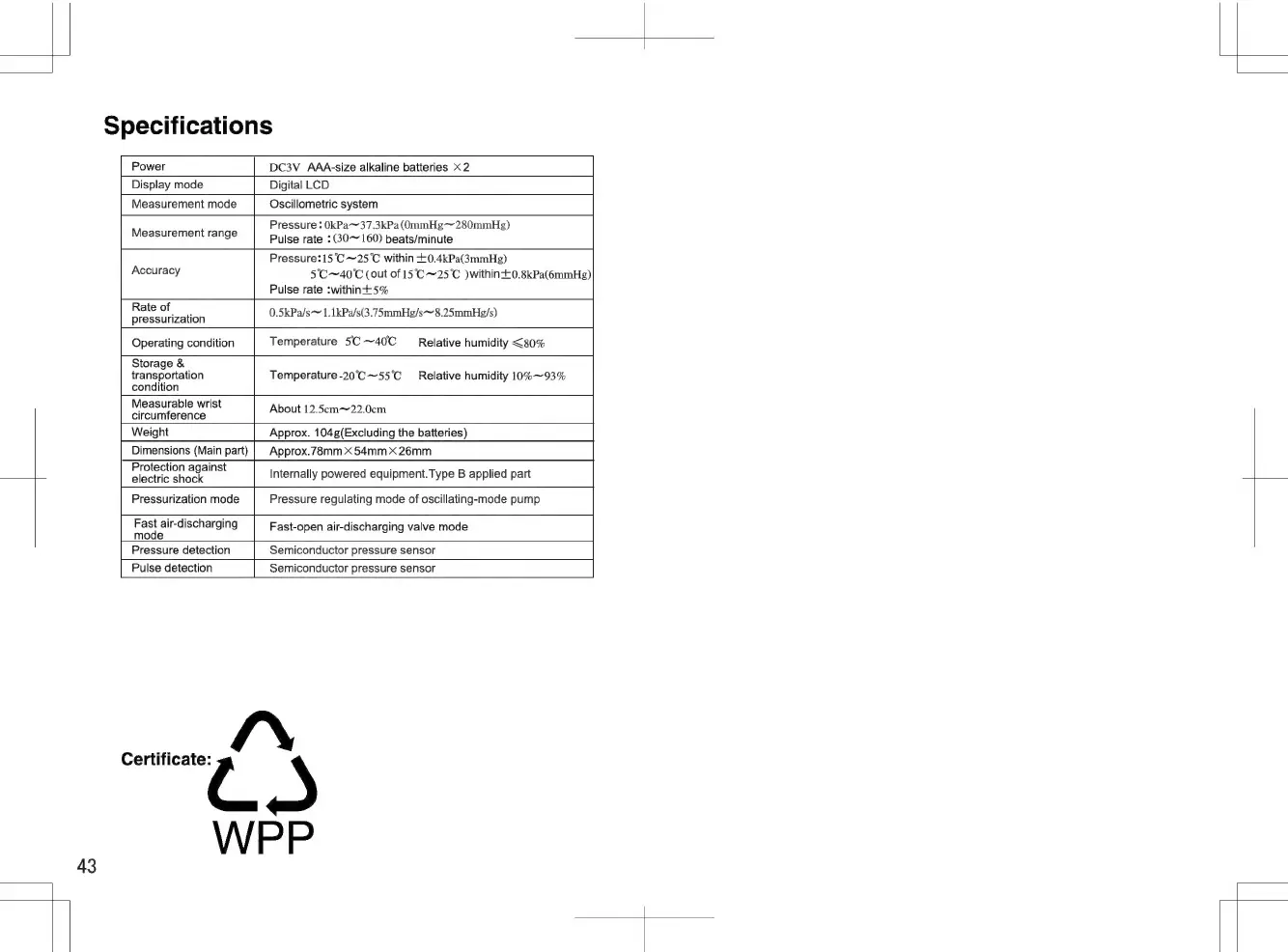 Specifications