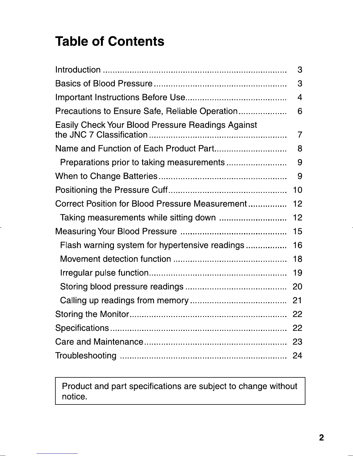 Panasonic EW3006S - Table of Contents