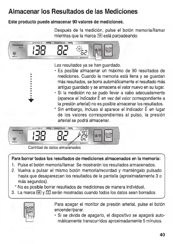 Panasonic EW3109 - Almacenar Los Resultados de las Mediciones