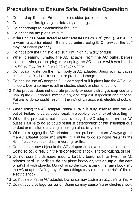 Panasonic EW3109 - Precautions to Ensure Safe, Reliable Operation