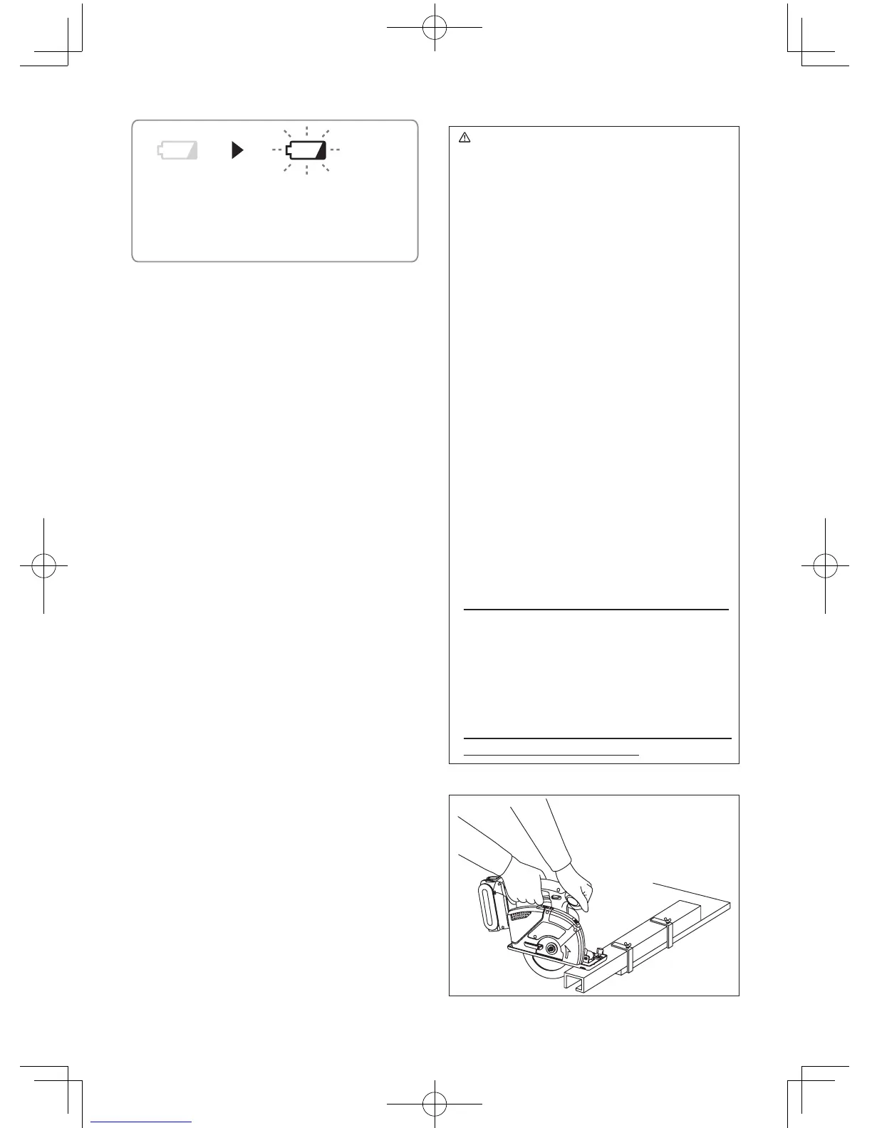 verktøyet og at batteriet må lades før mer bruk.