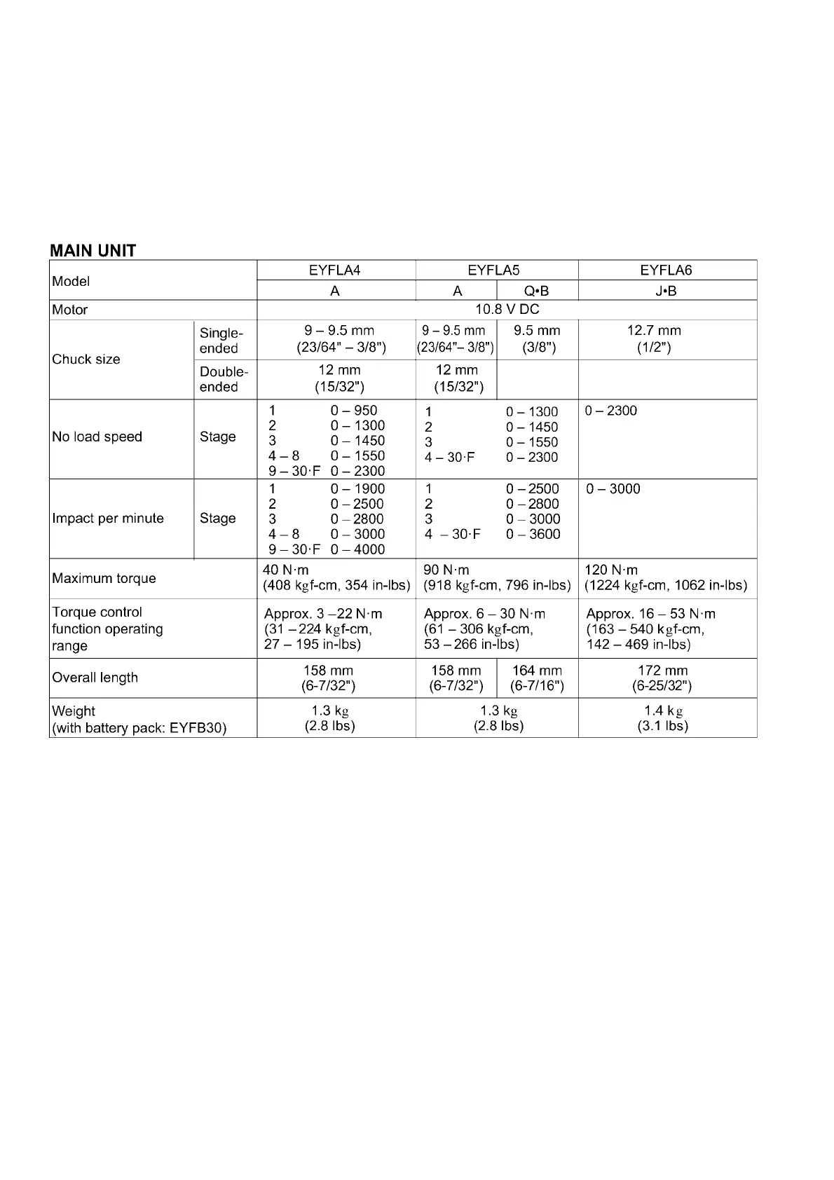 Panasonic EYFLA5A - Functional Description; Tool Components Identification