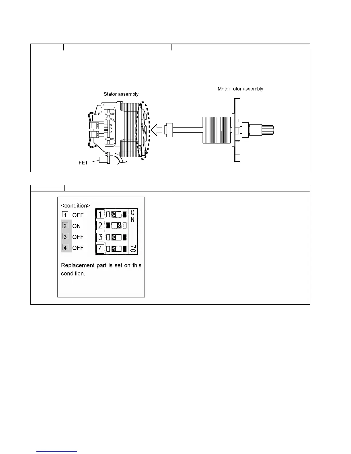 1. Confirm if the metal powder is stuck around the rotor. If so, take out