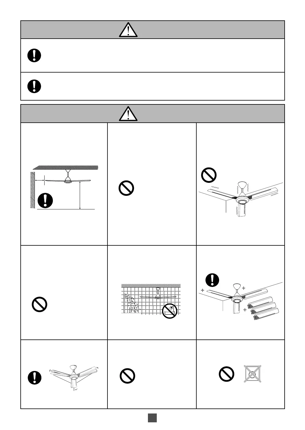 切勿將吊扇安裝於潮濕、高溫及高濕度的