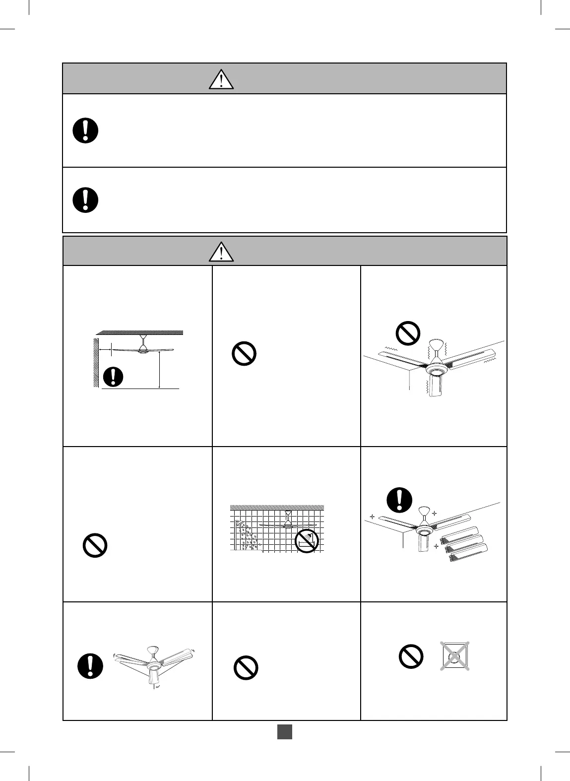 Do not install the Ceiling Fan at a wet, high temperature
