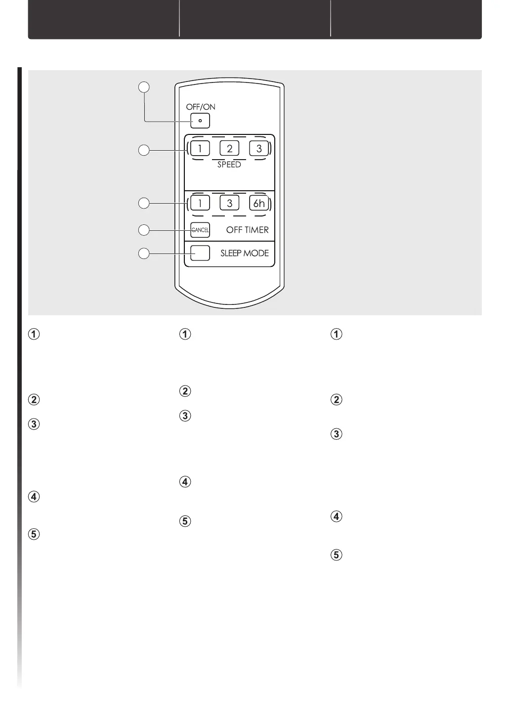 • 按 OFF/ON 按鍵啟動或停止吊扇。