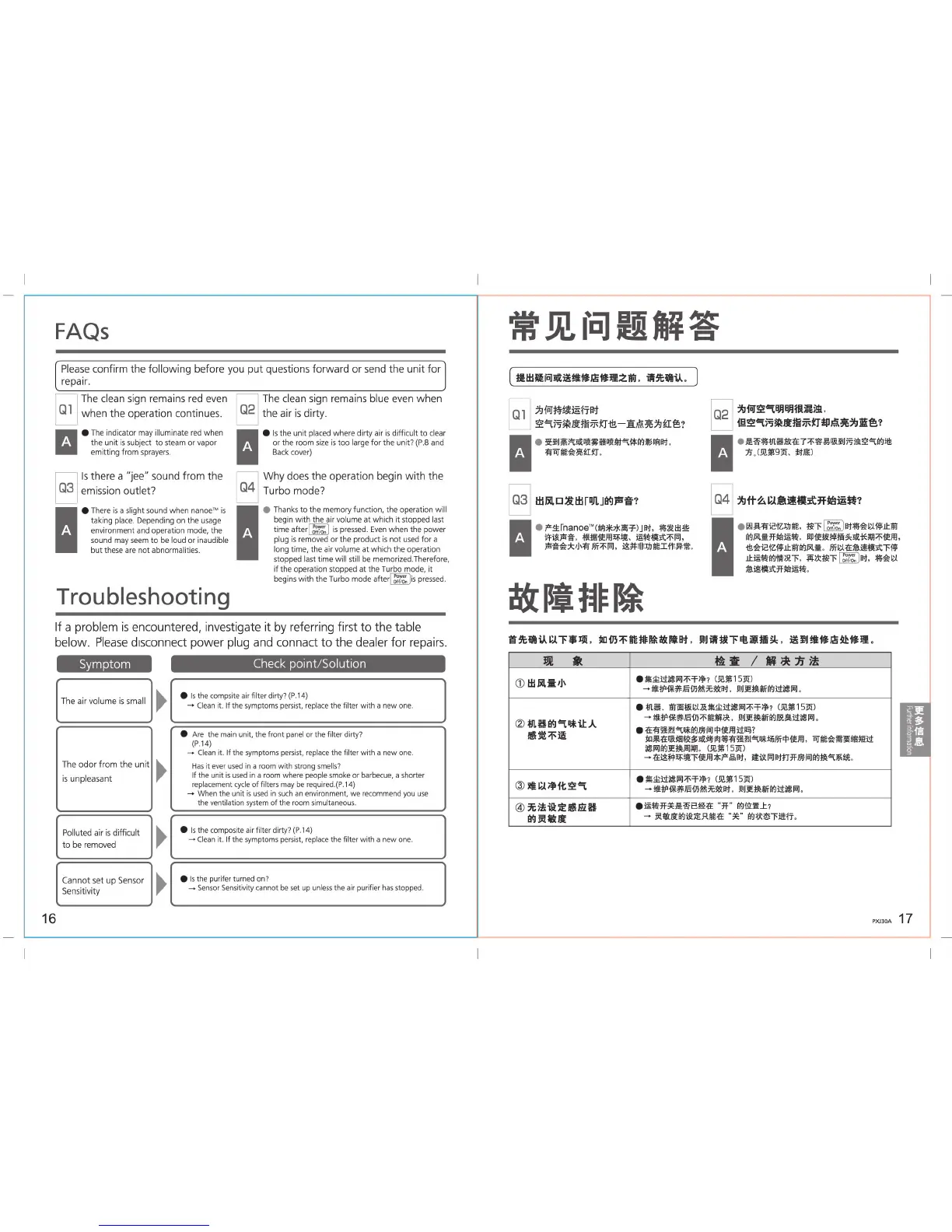 Panasonic F-PXJ30A - FAQs and Troubleshooting; Frequently Asked Questions (FAQS); Troubleshooting Guide