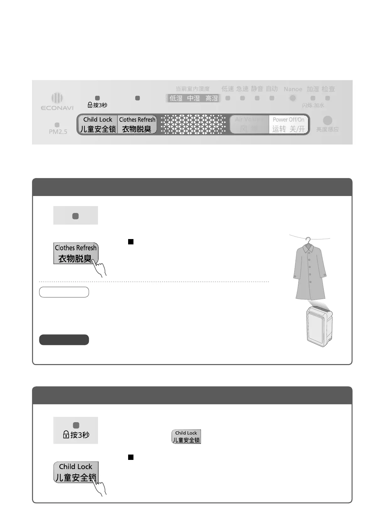 Panasonic F-VR401 - 衣物脱臭; 儿童安全锁