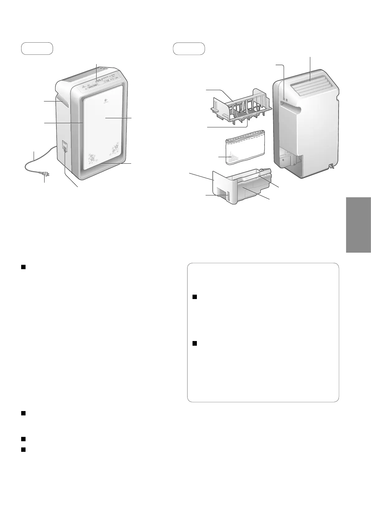 When there is a risk of freeze, please empty the tray. (If the product operates with water frozen, failure may be caused.)