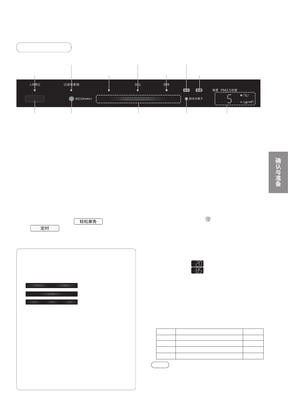 nanoe™指示灯空气污染度指示灯ECONAVI指示灯