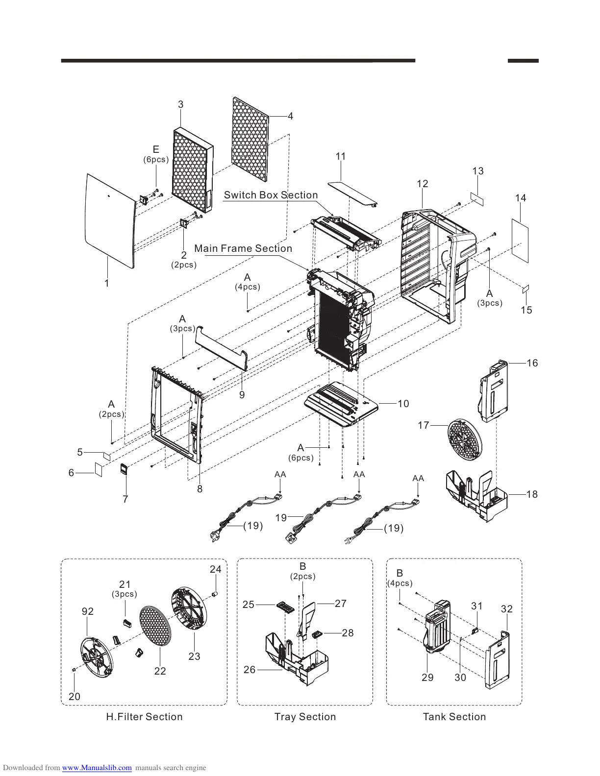 Panasonic F-VXF70A - Parts Identification; Main Body Section