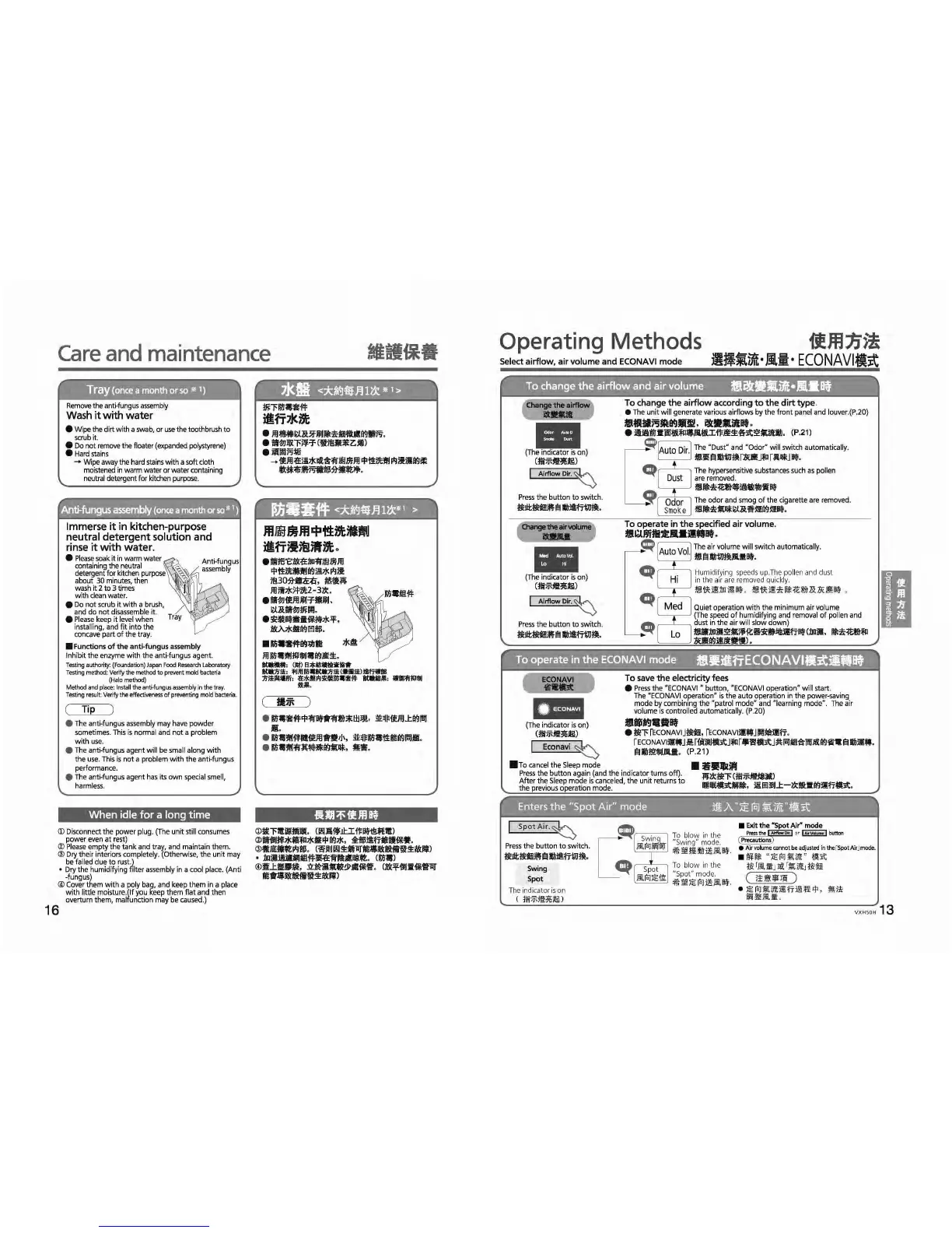 Panasonic F-VXH50H - Maintenance Procedures; Tray and Anti-fungus Assembly Cleaning; Advanced Operation and Modes; Adjusting Airflow and Air Volume