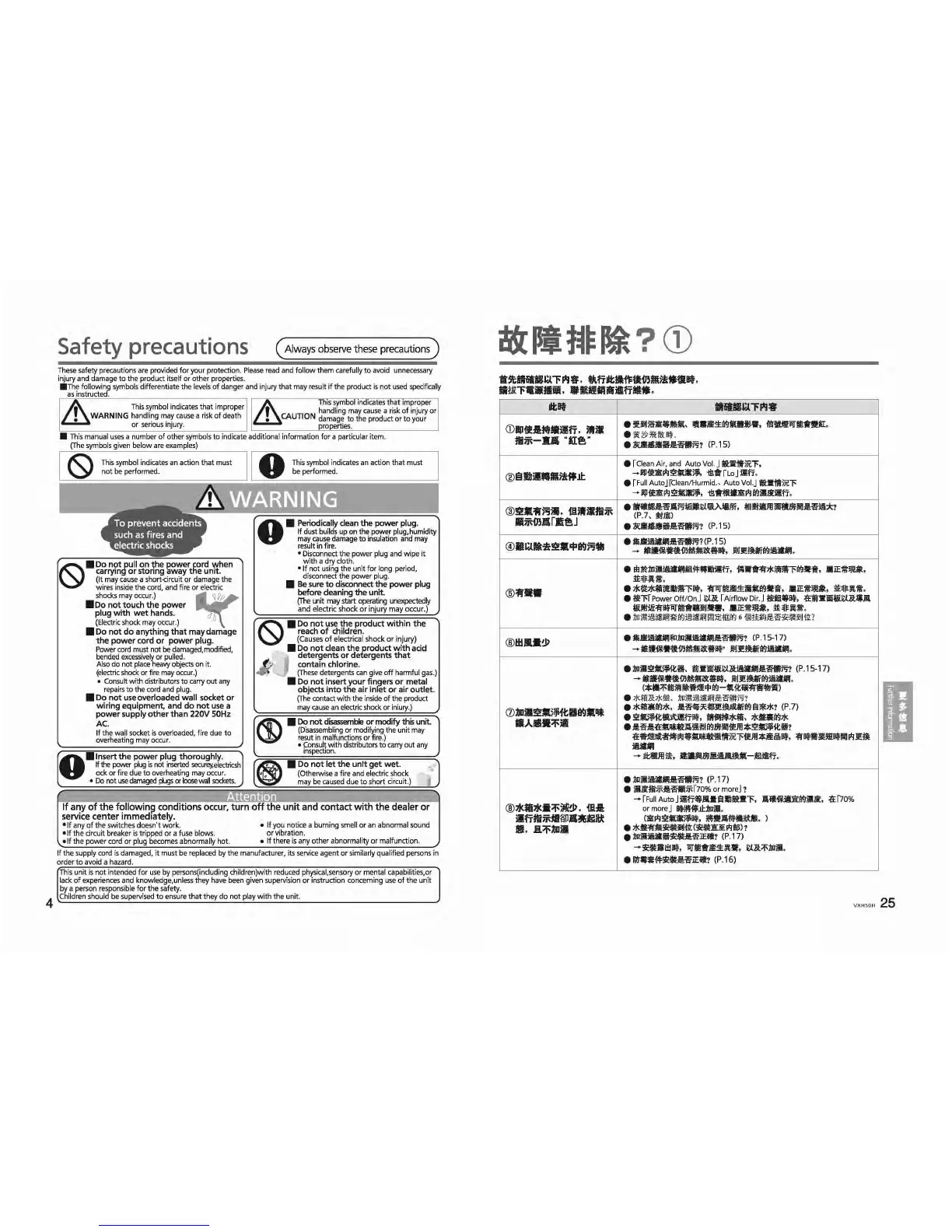 Other manuals for Panasonic F-VXH50H