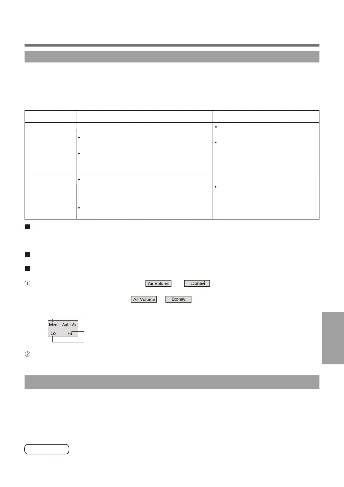 When the air volume is set to “Hi”, “Med” or “Lo”, the air volume cannot adjust automatically.