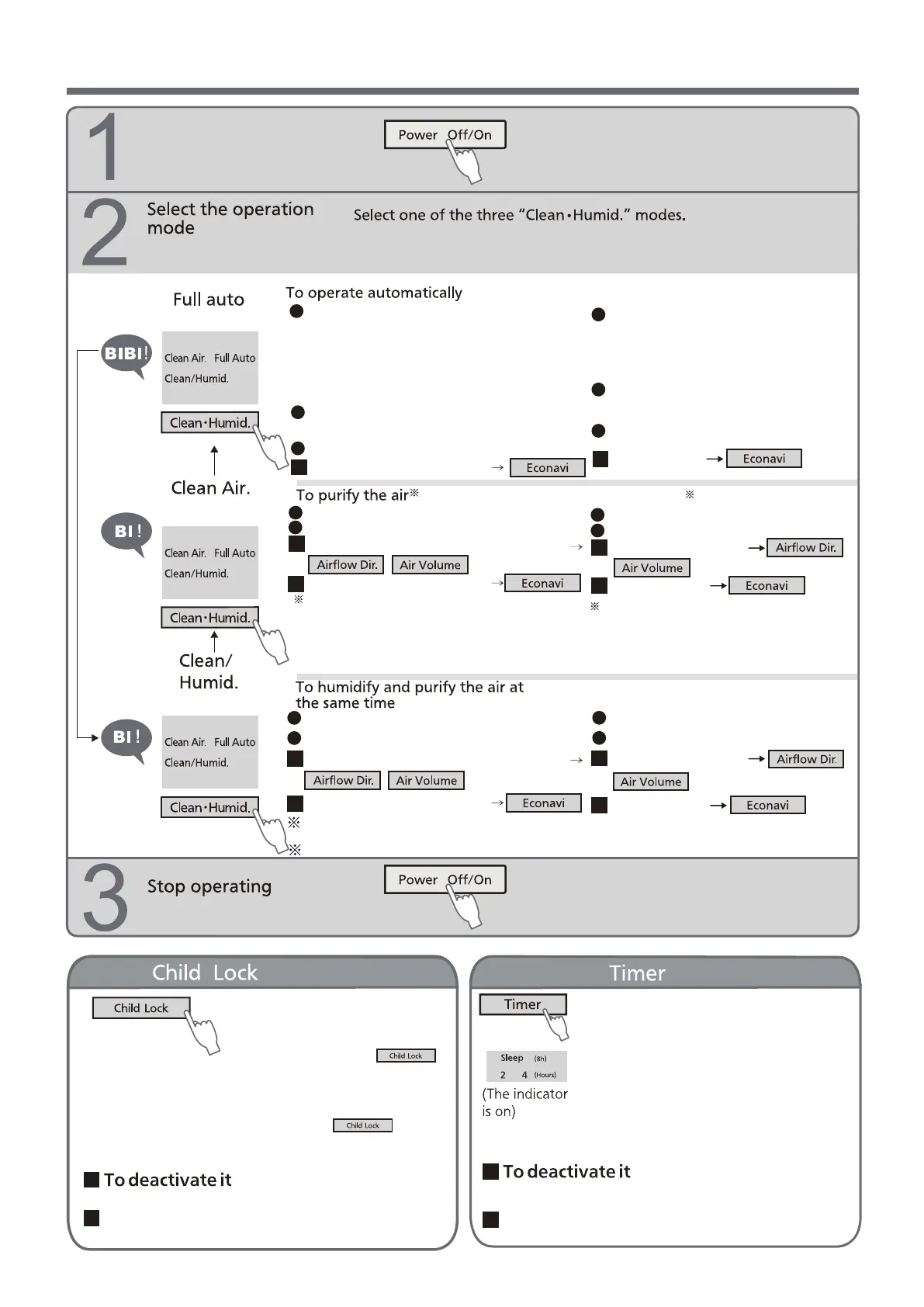 可从「Clean•Humid」的三个模式中选择。