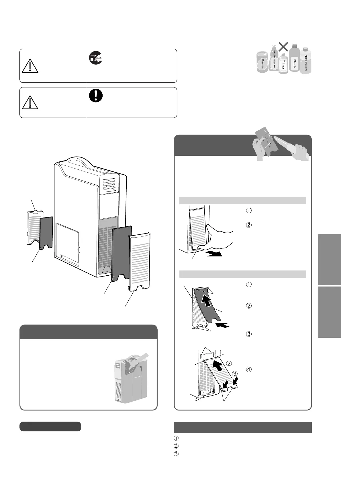● When using chemically treated cloth, follow its