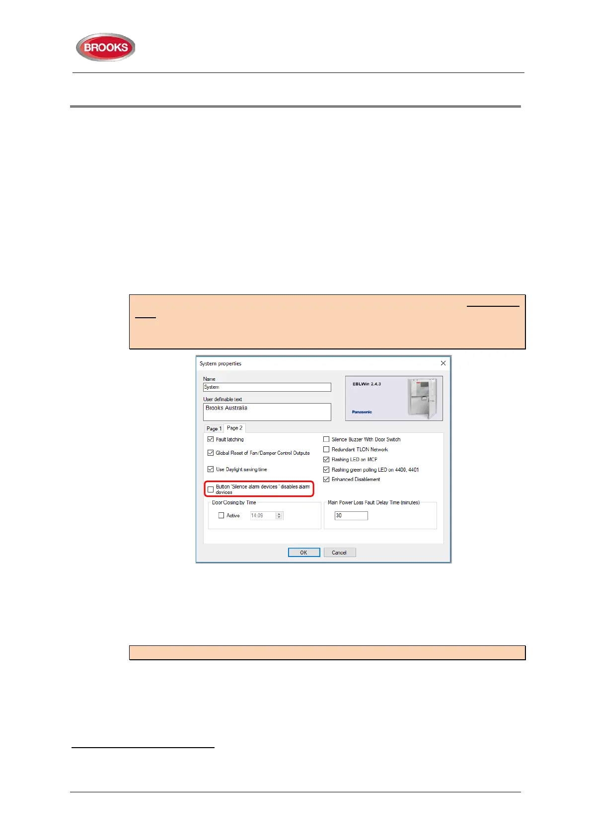 Note 1: This option (Button Silence alarm devices disables alarm devices) must not be