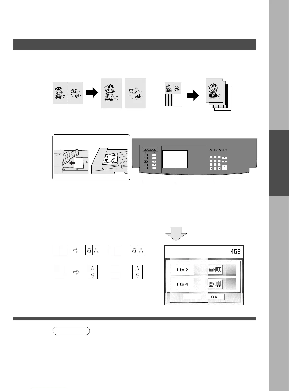 When 1 to 2 copying, set the original as follows: