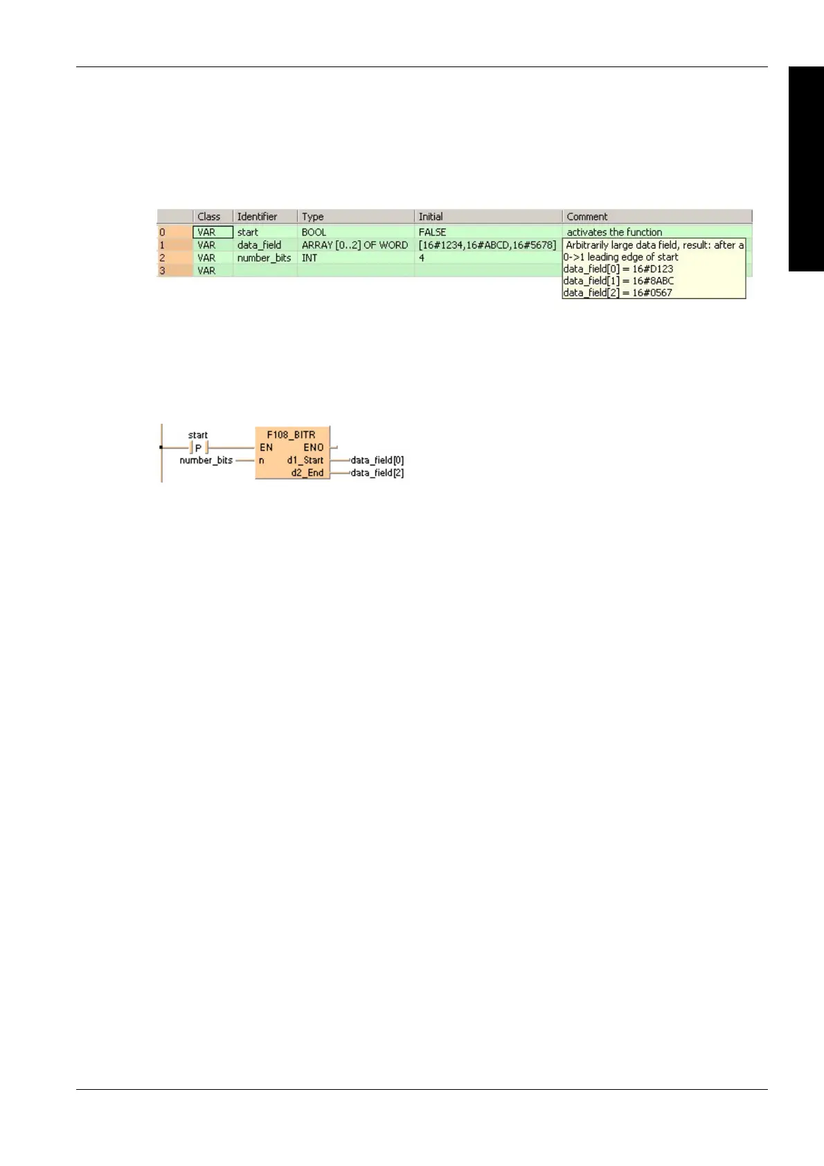 All input and output variables used for programming this function have been declared in the POU